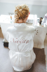 Fotografie ze svatebních příprav, které probíhaly v přilehlém domku: